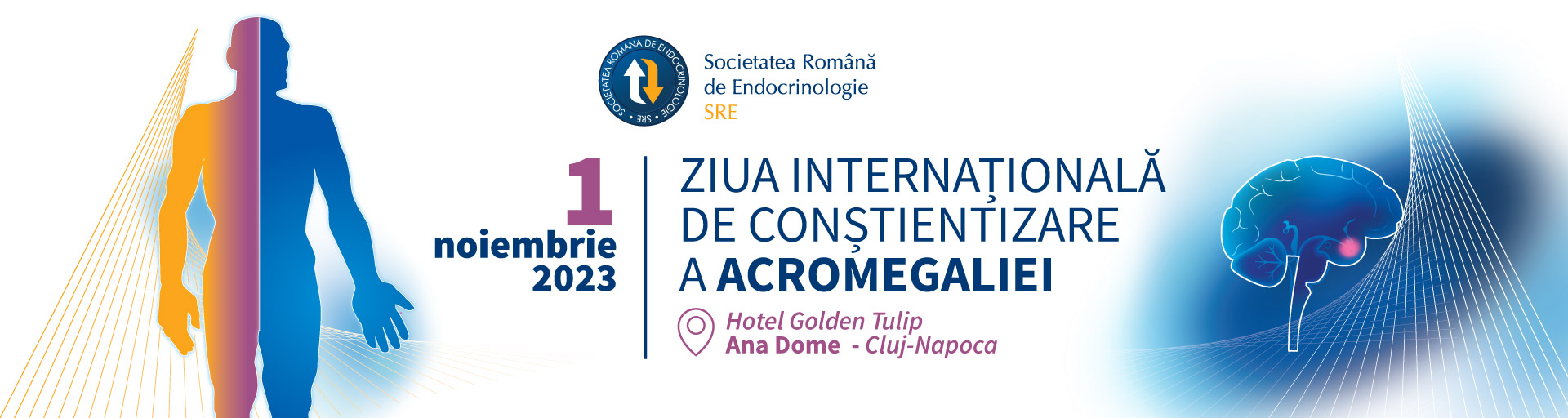 - Societatea Română de Endocrinologie organizează la Cluj, la Hotelul Golden Tulip Ana Dome evenimentul 1 Noiembrie 2023 – Ziua Internațională de Conștientizare a Acromegaliei. Programul ştiinţific poate fi descărcat aici