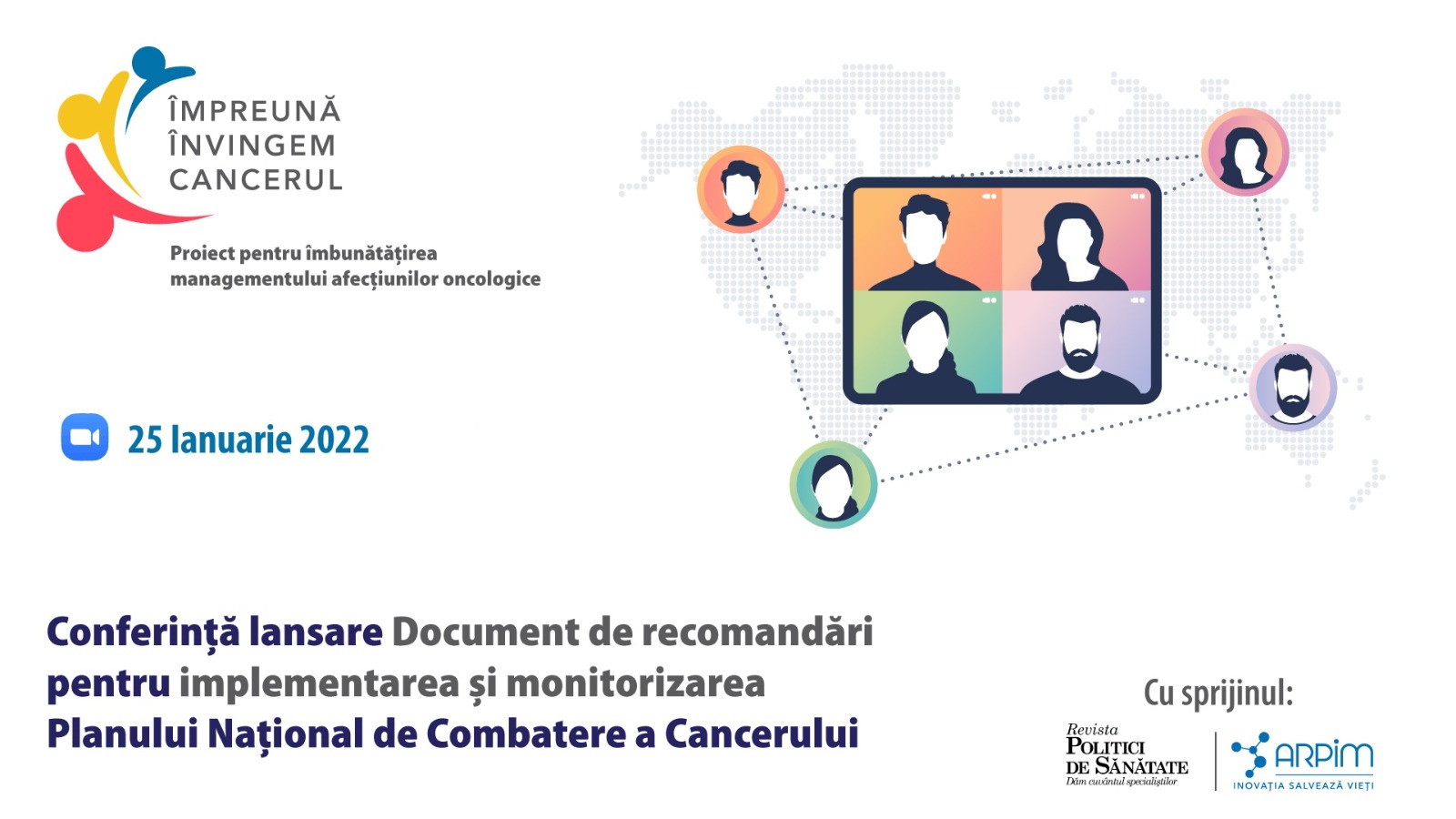 Conferința de lansare a documentului de recomandări pentru implementarea și monitorizarea Planului Național de Combatere a Cancerului – parte a proiectului ”Împreună Învingem Cancerul- poate fi urmărită live AICI.