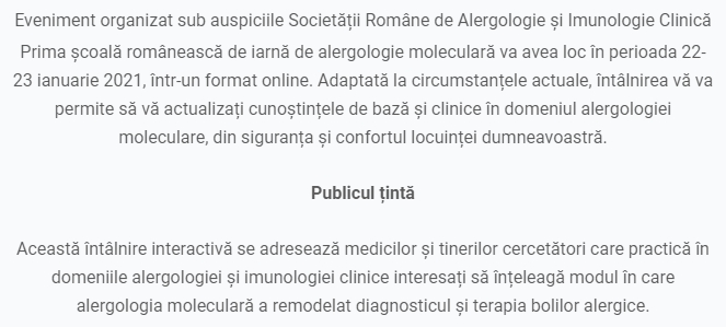 ALERGOLOGIE MOLECULARĂ - Prima Școală de Iarnă