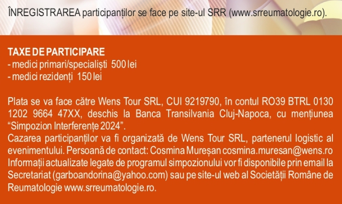 Afisari: 2795Organizator: https://srreumatologie.ro/interferente-in-reumatologie-2024/