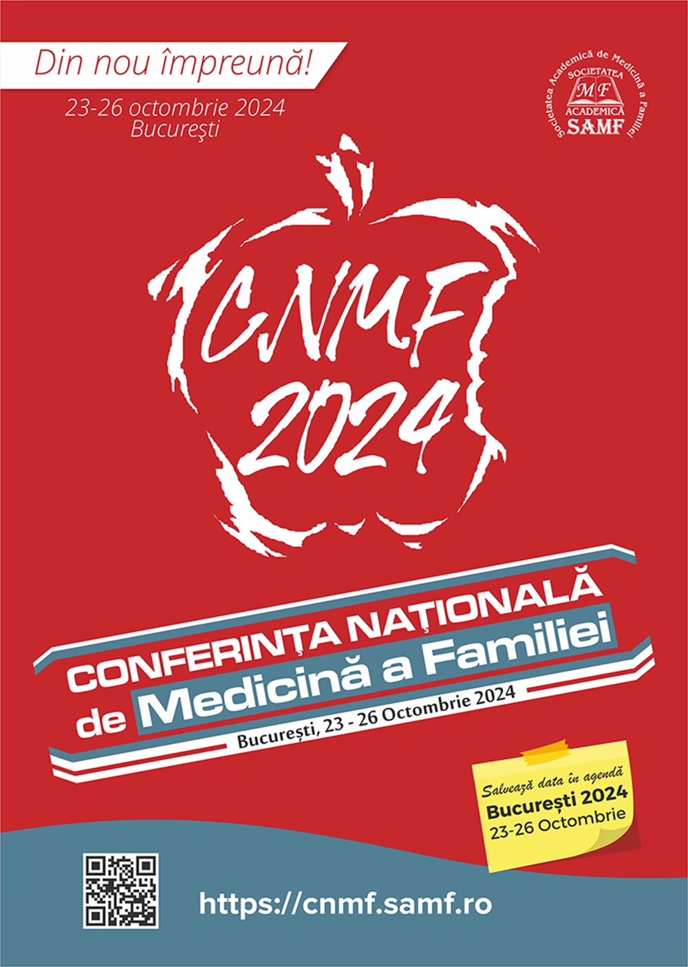 Societatea Academică de Medicina Familiei organizează în perioada 23-26 Octombrie, la București, Conferința Națională de Medicina Familiei, Ediția 2024.