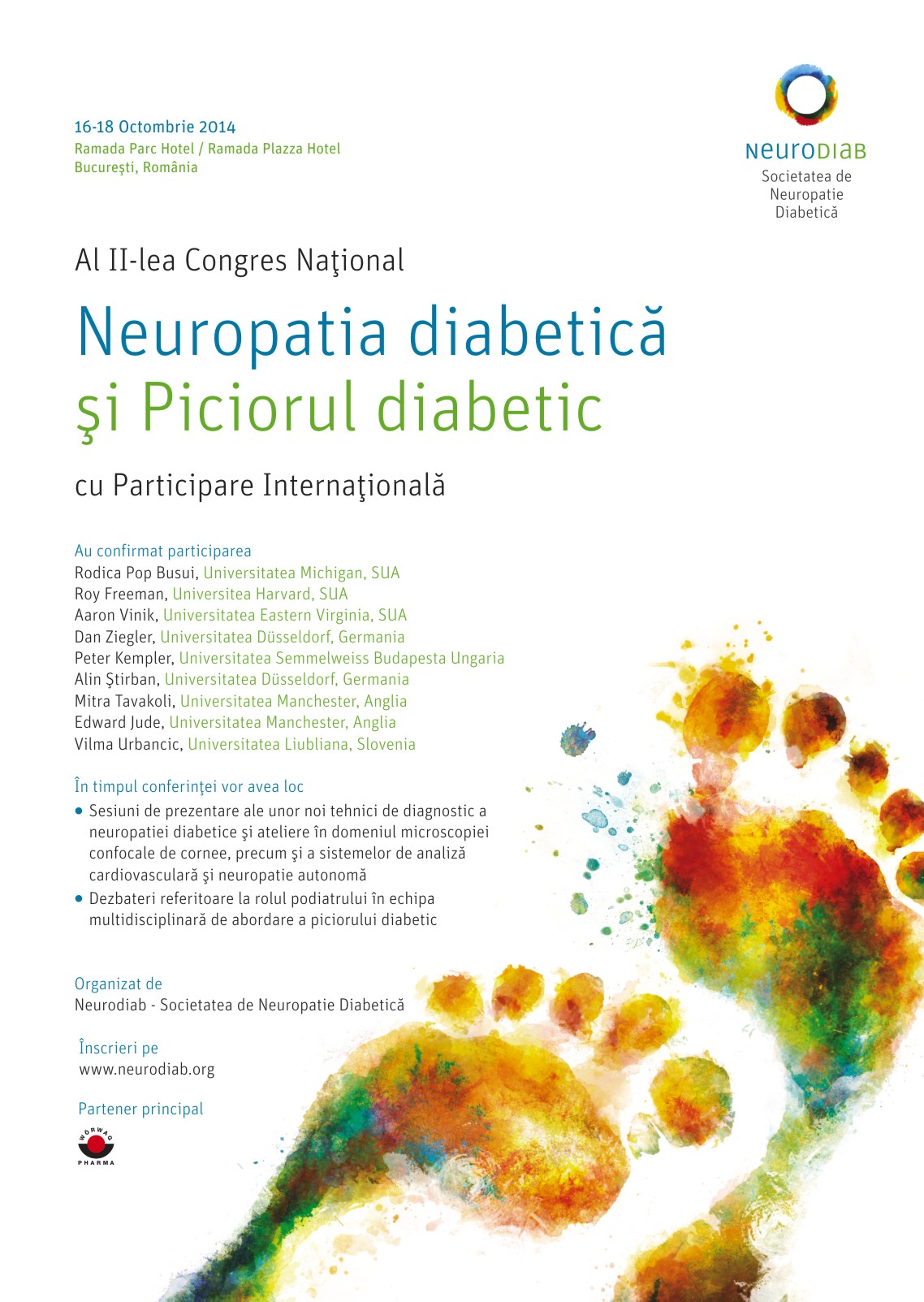 În 2014, Congresul Național de Neuropatie Diabetică şi Piciorul Diabetic va avea un program complex, cu sesiuni de prezentare a celor mai noi tehnici de diagnostic a neuropatiei diabetice, ateliere interactive în domeniul microscopiei confocale de cornee şi a sistemelor de analiză cardiovasculară şi neuropatie autonomă. De asemenea, vor fi organizate şi dezbateri referitoare la rolul podiatrului în echipa multidisciplinară de abordare a piciorului diabetic.