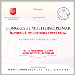 Congresul multidisciplinar “Impreuna construim excelenta” se desfasoara pe 9-12 octombrie 2019, la Bucuresti.