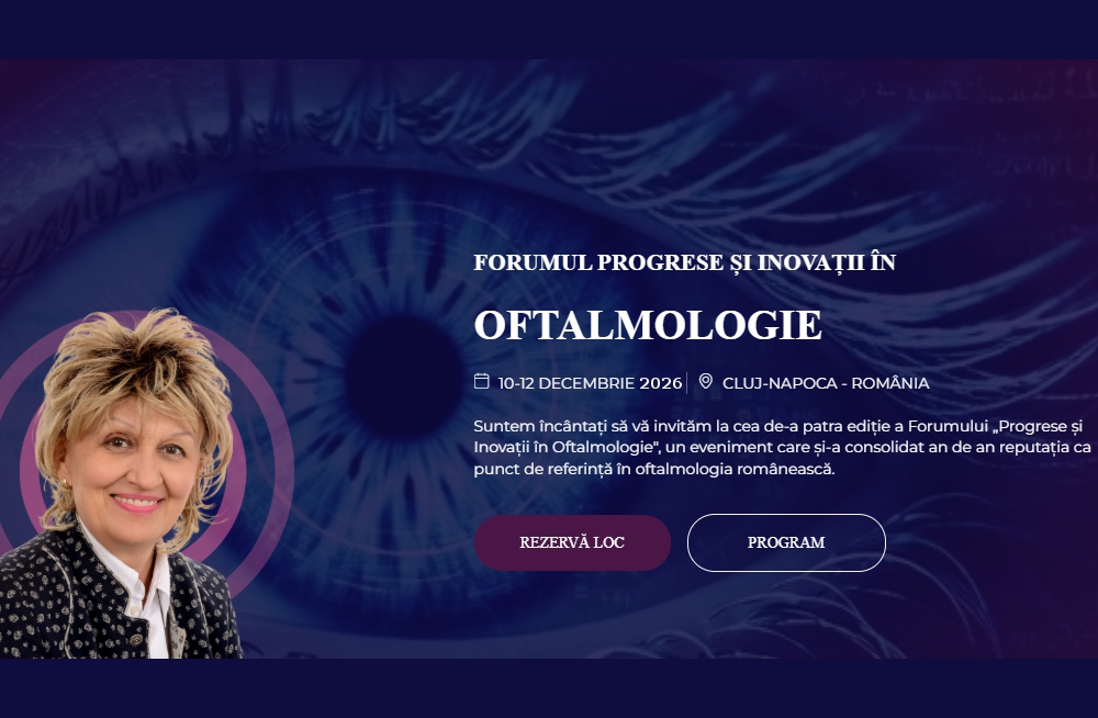 Suntem încântați să vă invităm la cea de-a patra ediție a Forumului „Progrese și Inovații în Oftalmologie”, un eveniment care și-a consolidat an de an reputația ca punct de referință în oftalmologia românească și din regiunea Central-Europeană.
