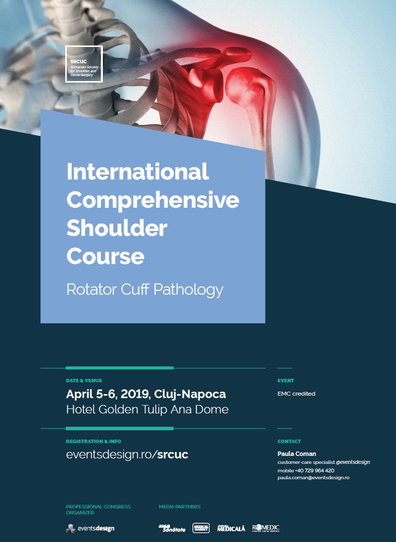 It is our honor and pleasure to welcome you to Cluj for the second edition of the International Comprehensive Shoulder Course for which the main topic is Rotator Cuff Pathology. Started under the AAOS patronage, the course is now running under the Romanian Association of Shoulder and Elbow Surgery with our international friends close by. Also, this is the second year we are organizing a course for physical therapists.