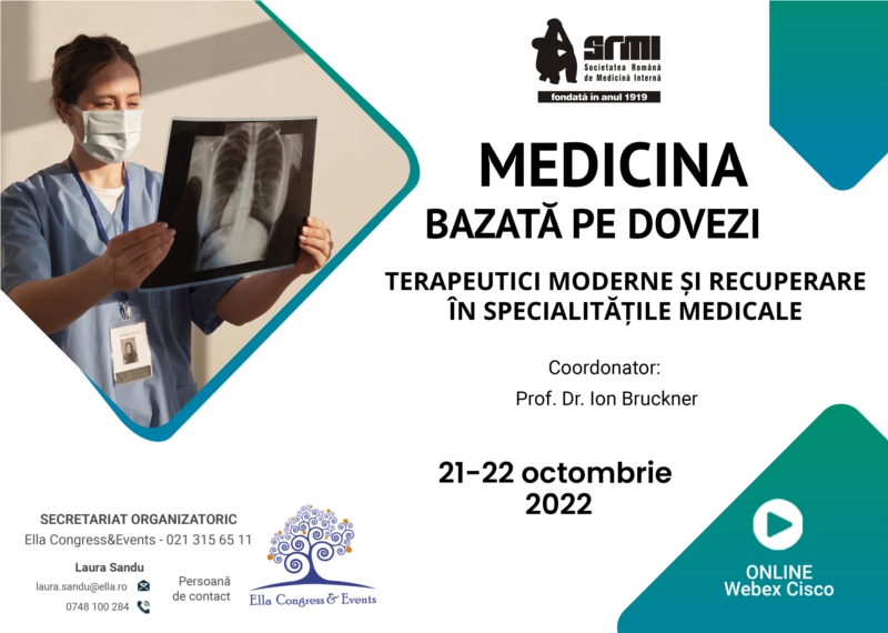 Societate Româna de Medicină Internă organizează tradiționala conferință Medicina Bazată pe Dovezi, cu tema „Terapeutici moderne și recuperare în specialitățile medicale”, ce se va desfășura online, în perioada 21-22 Octombrie 2022.