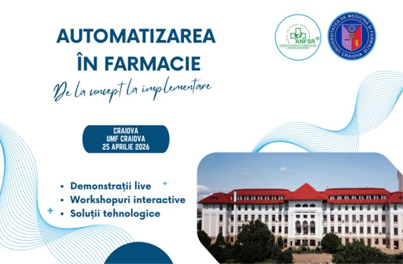 Eveniment ce va fi organizat în data de 25 aprilie 2026 de către Universitatea de Medicină și Farmacie din Craiova - Facultatea de Farmacie în parteneriat cu Asociația Națională a Farmaciștilor de Spital din România (ANFSR).
