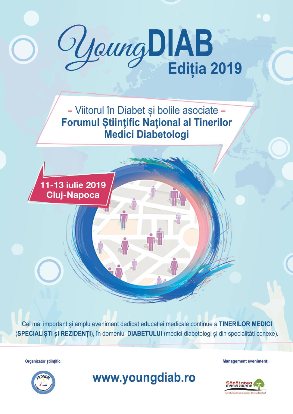 YoungDIAB.Viitorul în diabet și bolile asociate – Forumul Științific Național al Tinerilor Medici Diabetologi se află la cea de a II-a ediție și va avea loc în Cluj Napoca, în perioada 11-13 iulie 2019, sub egida Facultății de Medicină a UMF „Iuliu Hațieganu” din Cluj-Napoca.
