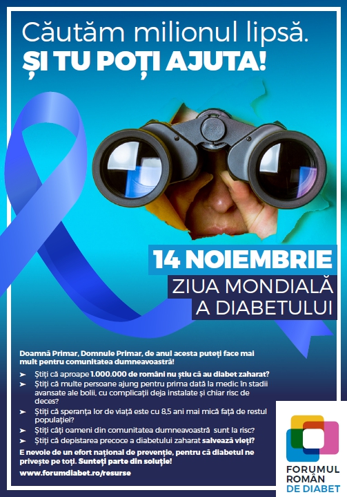 Implicarea autorităților locale și intervenția în comunitățile pe care le gestionează pot salva vieți. Pe plan internațional, există mai multe inițiative de implicare a autorităților locale în prevenția bolilor cronice, multe dintre aceste afecțiuni fiind agravate de stilul de viață modern. Cifrele alarmante ne arată că aceste intervenții concrete în domeniul educației, prevenției și depistării precoce a diabetului zaharat trebuie să devină prioritare. Forumul Român de Diabet își exprimă disponibilitatea de a oferi tot sprijinul necesar primarilor care doresc să se implice în prevenția și depistarea la timp a cazurilor de diabet zaharat. Doar împreună putem găsi “milionul lipsă”.
