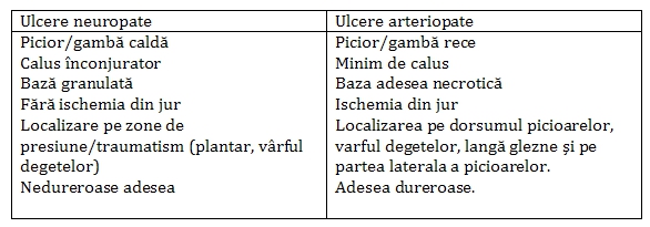 Aspecte clinice – ulcer neuropat vs. ulcer arteriopat: