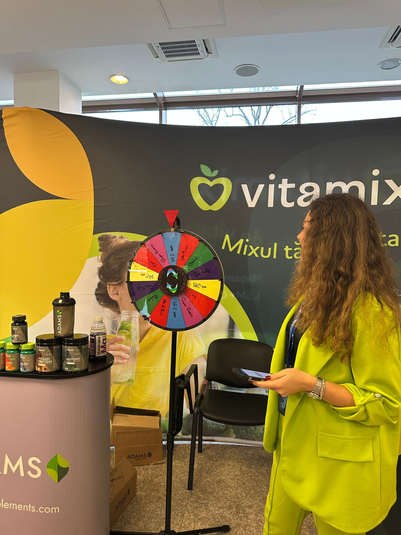 Unul dintre punctele de atractie ale standului este activitatea interactiva „Spin to Win”, care aduce un plus de distractie si recompense pentru participanti. Cei interesati au sansa de a castiga produse din portofoliul Adams Vision prin simpla descarcare a aplicatiei Vitamix, o platforma pentru cardul de fidelitate si un mod de a transmite informatii despre noile promotii utilizatorilor.