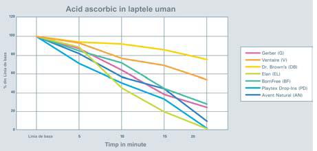 „Manipularea și stocarea laptelui de la sân și a celui praf pot să influențeze nivelurile de vitamina C,” afirmă Dr. Francis. „Capacitatea de a menține vitamina C în biberoane pare să fie influențată de designului biberonului.” Ea a adaugat faptul că, vitamina C- care este cunoscută ca fiind susceptibilă de oxidare se degradează la un anumit punct, vitaminele A și E încep să scadă, de asemenea.