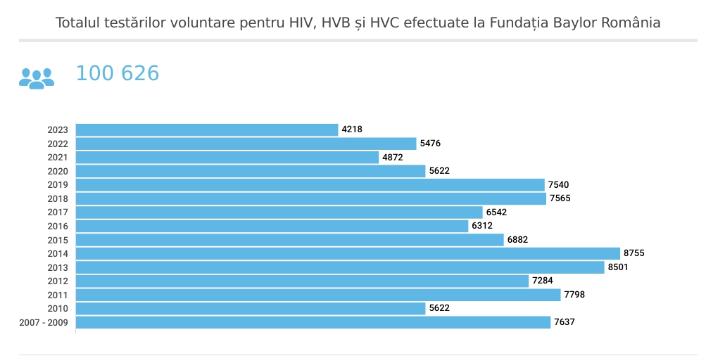 La sfârșitul anului 2023, Fundația Baylor Marea Neagră înregistra peste 100.000 de beneficiari, persoane care au solicitat serviciul de testare pentru HIV și hepatitele B și C atât din proprie inițiativă cât și la recomandarea unui medic.
