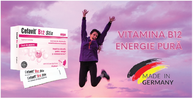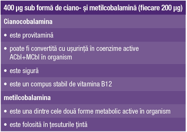 Supliment alimentar cu doză mare de vitamina B12 și metilcobalamină bioactive: 400 µg vitamin B12. Formă de prezentare unică, plicuri orodispersabile, îl face ușor de administrat, fără apă și astfel se absoarbe imediat din mucoasa bucală