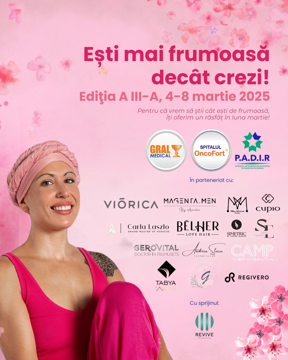 Această campanie nu ar fi posibilă fără sprijinul unor parteneri de încredere, care și-au unit forțele pentru a oferi pacientelor o experiență memorabilă: Viorica Cosmetics, Cupio, Farmec, Belher, Tabya Lashes, Regivero, CAMP - Cocktail and Makeup Party, Mirela Vescan MakeUp Academy, Carla Laszlo, SIMETRIC by Larisa Tanase, Selena Beauty Concept, Andrea Stoica, Magenta Men, G. Cosmetika și Revive Production.