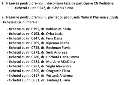 Castigatorii Tombolei Natural Pharmaceuticals Supliments de la Congresul National de Pediatrie din 22 - 24 Martie 2018