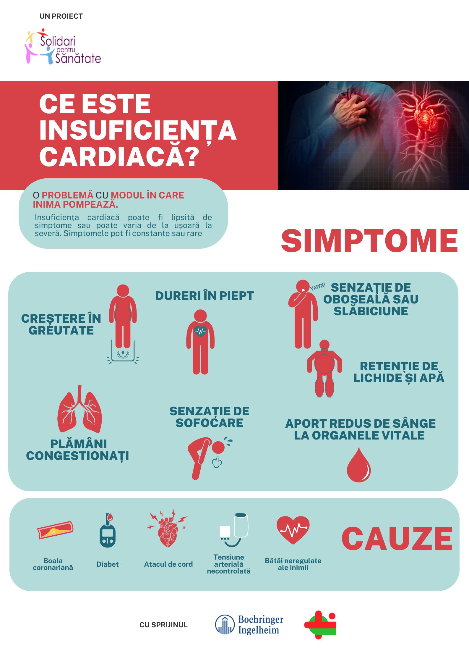 Asociația Solidari pentru Sănătate, fondată pentru a ajuta pacienții diagnosticați cu afecțiuni cronice, a lansat campania de informare și conștientizare "Am insuficiență cardiacă, plec in vacanță!" pentru a educa pacienții și publicul larg despre riscurile insuficienței cardiace și măsurile preventive necesare în sezonul cald. Campania, desfășurată în perioada iulie – septembrie 2024, va include activități online și resurse disponibile pe paginile de Facebook "Solidari pentru Sănătate" și "Pacientul 2.0", estimând să atingă peste 20.000 de vizualizări online. Campania este sprijinită de Boehringer Ingelheim și clinica Theracardia Brașov.