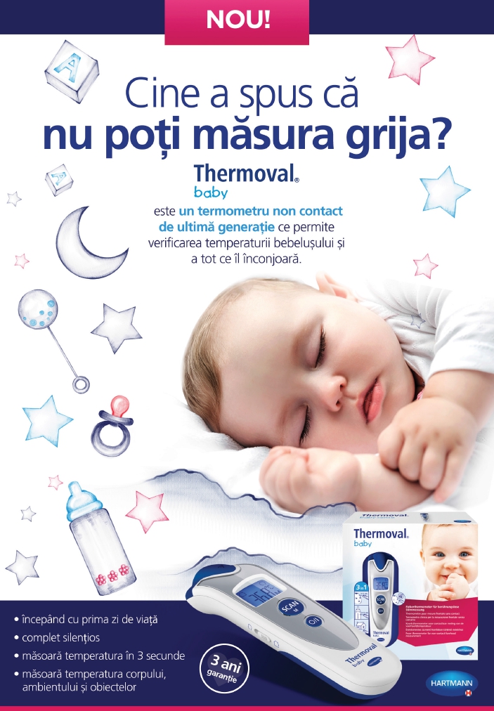 Putem măsura temperatura bebelușului nostru fie rectal, oral, axilar, fie la nivelul tâmplei, însă cel mai indicat este să folosim un termometru non-contact care să nu îl deranjeze nici măcar în somn. O astfel de măsurare va fi cea mai convenabilă în cazul bebelușilor sau copiilor mici, celelalte variante fiind mai incomode, atât pentru copil cât și pentru părinte.