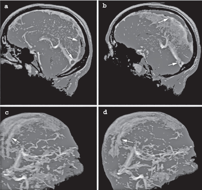 • pot apărea rezultate fals pozitive sau negative datorită unor artefacte de flux regionale (în torcular, sinusul sigmoid sau transvers) sau a unor variante constituţionale de calibru ale sinusurilor venoase (2).