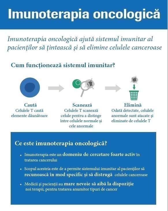 Imunoterapia oncologică reprezintă cea mai nouă și promițătoare inovație în lupta împotriva cancerului, iar Roche este lider mondial in imuno-oncologie . Spre deosebire de terapiile tradiționale, care țintesc direct tumora, imunoterapia funcționează prin întărirea sistemului imunitar pentru a-l ajuta să combată eficient cancerul. Întrucât imunoterapiile oncologice țintesc sistemul imunitar, acestea au potențialul de a acționa asupra oricărui cancer care depinde de mecanismele sistemului imunitar.