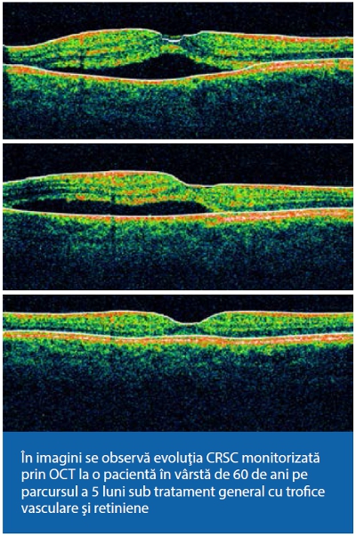 CRSC este o afecţiune relativ frecventă ce constă în decolarea seroasă a retinei senzoriale la nivelul regiunii maculare, prin acumulare de lichid seros, neinflamator între retina senzorială intactă şi epiteliul pigmentar retinian (EPR) afectat printr-un defect focal al coriocapilarei.