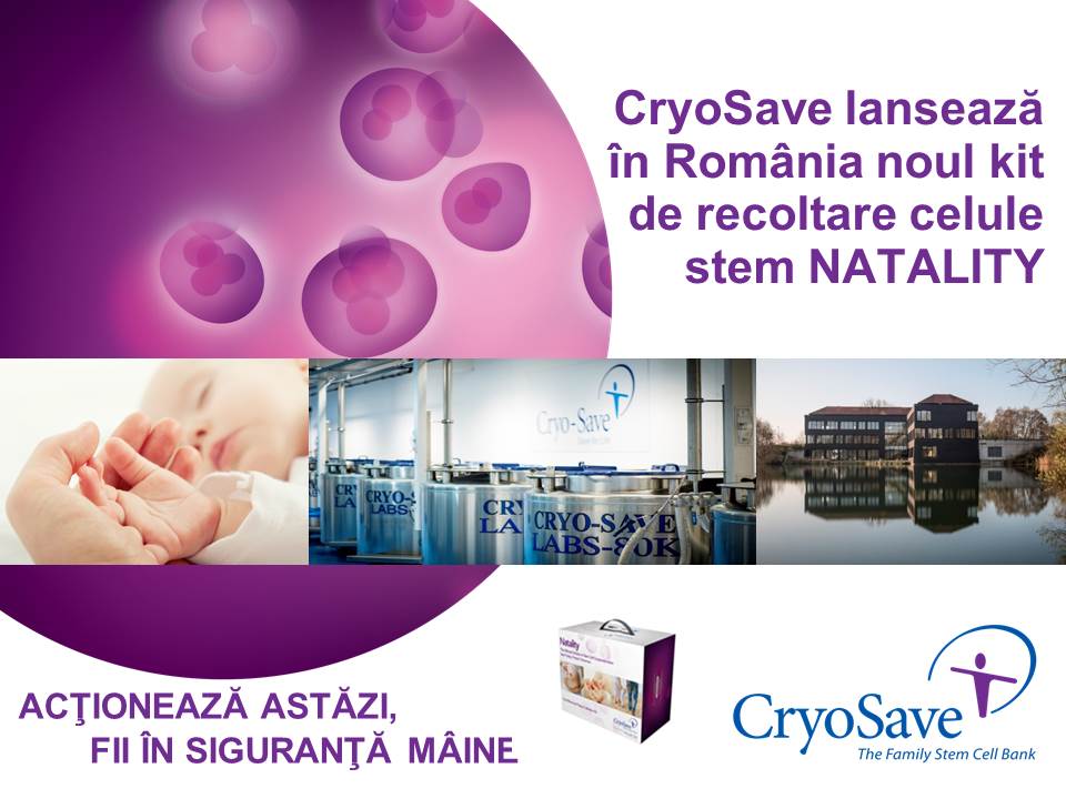 CryoSave, principala unitate internațională de procesare și criogenare de celule stem și cea mai mare bancă de celule stem de din Europa continuă sa își sporească acoperirea forței de reprezentare in toata lumea. Lansarea unui inovator și îmbunătățit Kit de recoltare si transport al probelor in Romania, consolidează comunicarea directă cu clienții finali. Există deja multe boli care pot fi tratate prin utilizarea celulelor stem, iar numărul tratamentelor se află în creștere. CryoSave a stocat probe criogenate din peste 70 de țări de pe șase continente, deținând facilități ultra-moderne de procesare și depozitare în Belgia, Elveția, Germania, Dubai, Africa de Sud și Portugalia.