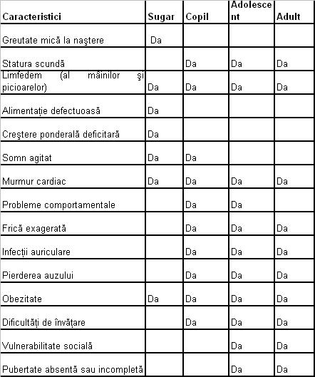 Sumarul caracteristicilor clinice ale sindromului Turner sunt: