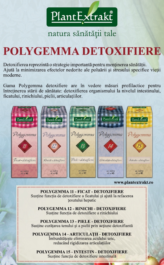 Cele trei preparate Poly-gemma, cu acţiune detoxifiantă pe principalele căi de eliminare, ar fi bine să se administreze în cure anuale, o dată pe an.