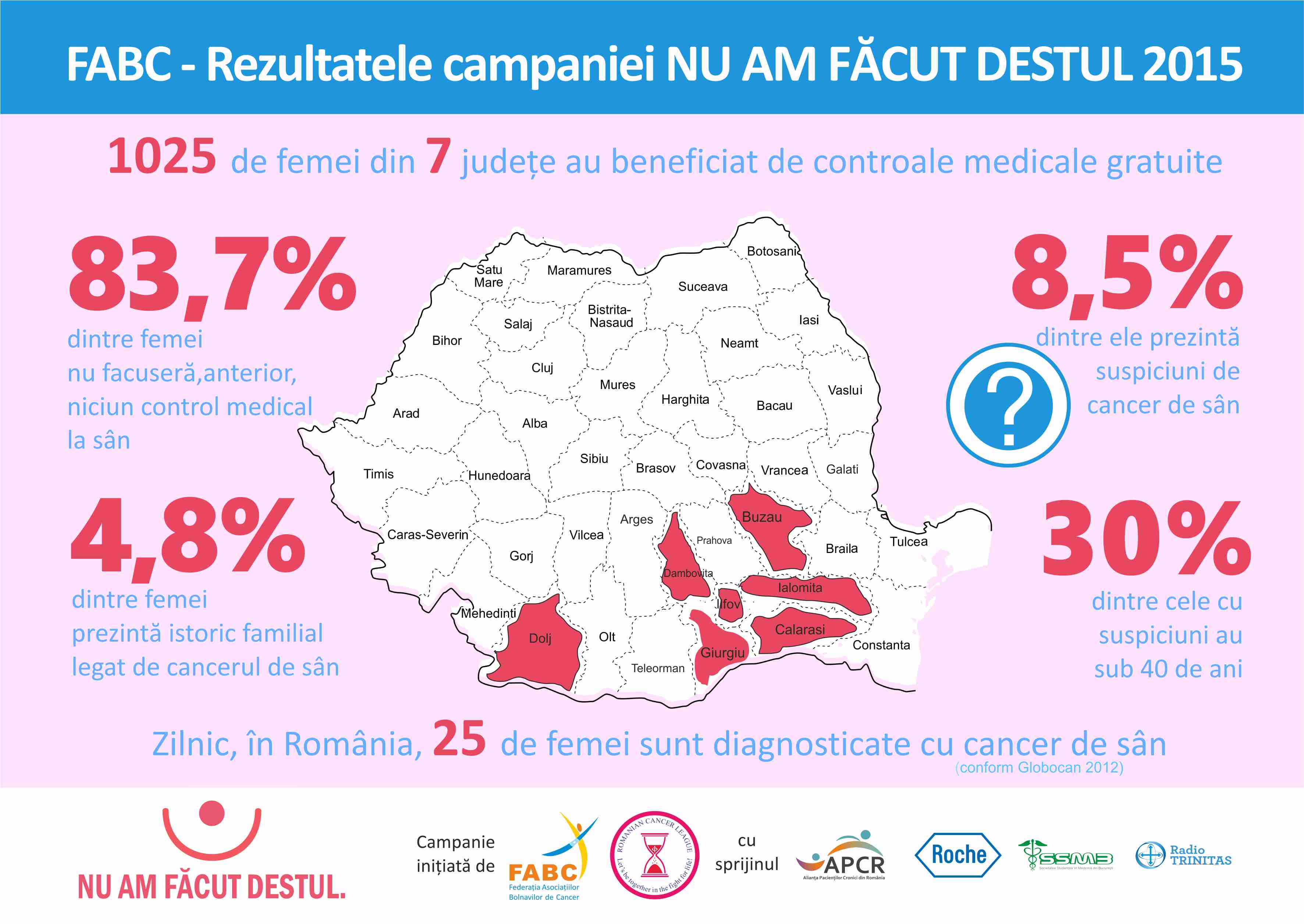 În perioada octombrie – decembrie 2015, Federația Asociațiilor Bolnavilor de Cancer și Liga Română de Cancer au organizat a cincea ediție a campaniei naționale de informare cu privire la cancerul de sân „Nu am făcut destul”. Pentru al doilea an consecutiv, a fost desfășurată o caravană în șapte județe din țară în cadrul căreia femeile au putut beneficia de examinări medicale gratuite ale sânilor.