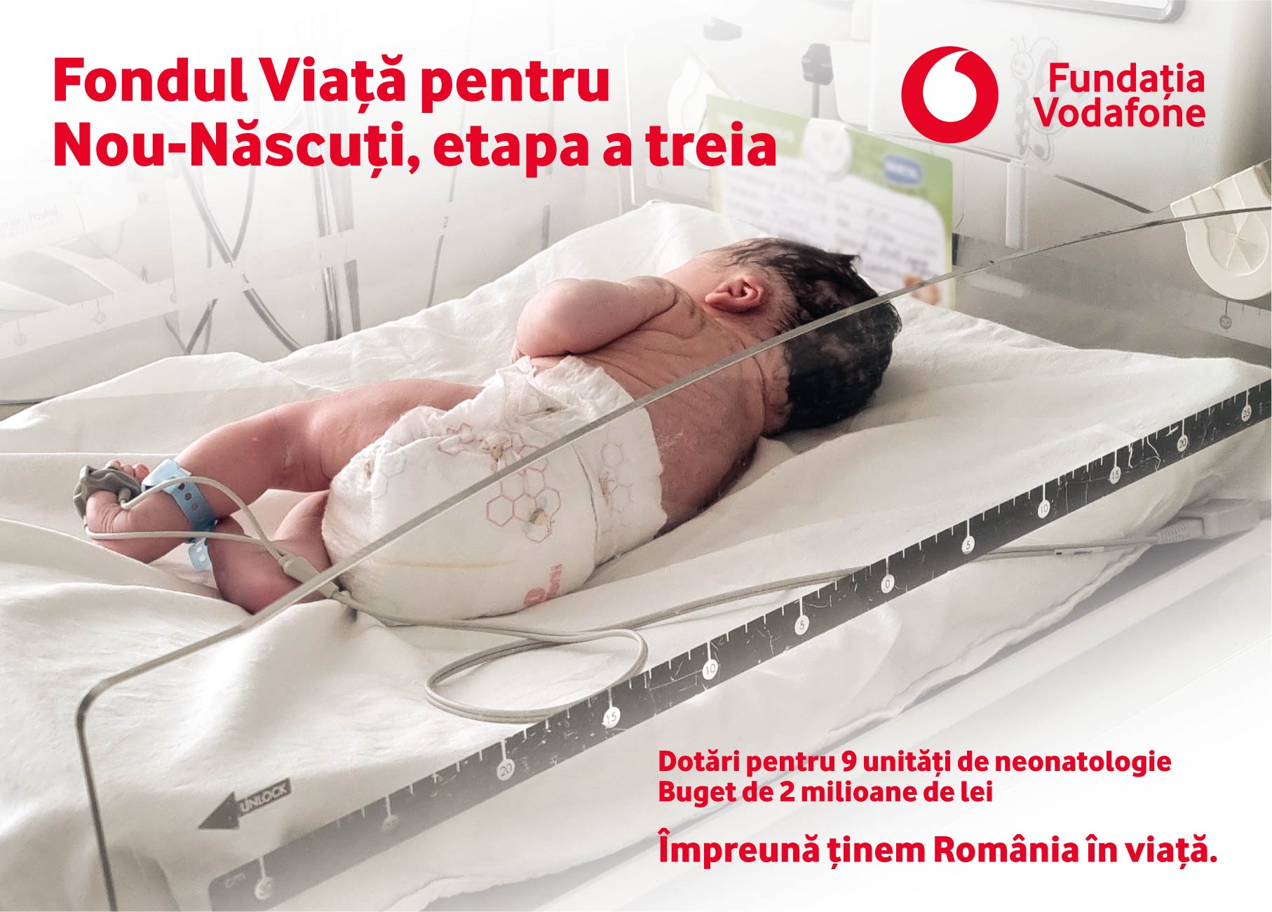 Fundația Vodafone a început investiția în neonatologie în urmă cu 10 ani, când în România rata mortalității infantile era de aproape 10‰. În prezent, datorită eforturilor depuse alături de alte organizații, mortalitatea infantilă a scăzut la 5,8* la 1.000 de nașteri vii (*sursa). Aceste cifre ne situează la o valoare a ratei mortalității infantile aproape duble față de media din Europa. Una dintre cauze este aceea că doar 9% dintre secțiile și compartimentele de neonatologie din țara noastră au în dotare toate echipamentele necesare pentru a îngriji nou-născutul prematur sau cu probleme grave de sănătate.