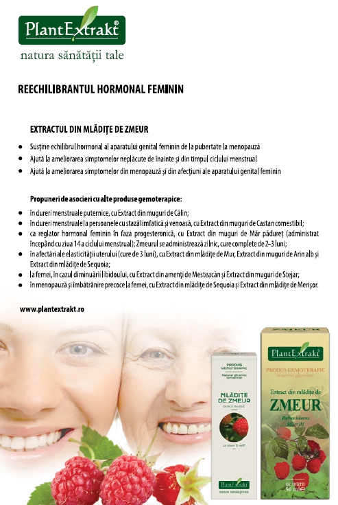 Există câteva preparate gemoterapice destinate exclusiv femeilor, dintre care, principalul gemoterapic este extractul din mlădiţe de Zmeur, un adevărat reechilibrant al organismului feminin, recomandat în dezechilibre hormonale, cu începere de la pubertate până la menopauză.