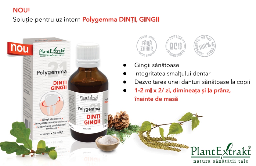 Polygemma - dinți, gingii vine să completeze gama terapiilor naturale “Polygemma” - asocieri de gemoterapice cu recomandări variate pentru susținerea sănătății organismului (la nivel respirator, digestiv, renal, vascular, nervos etc).