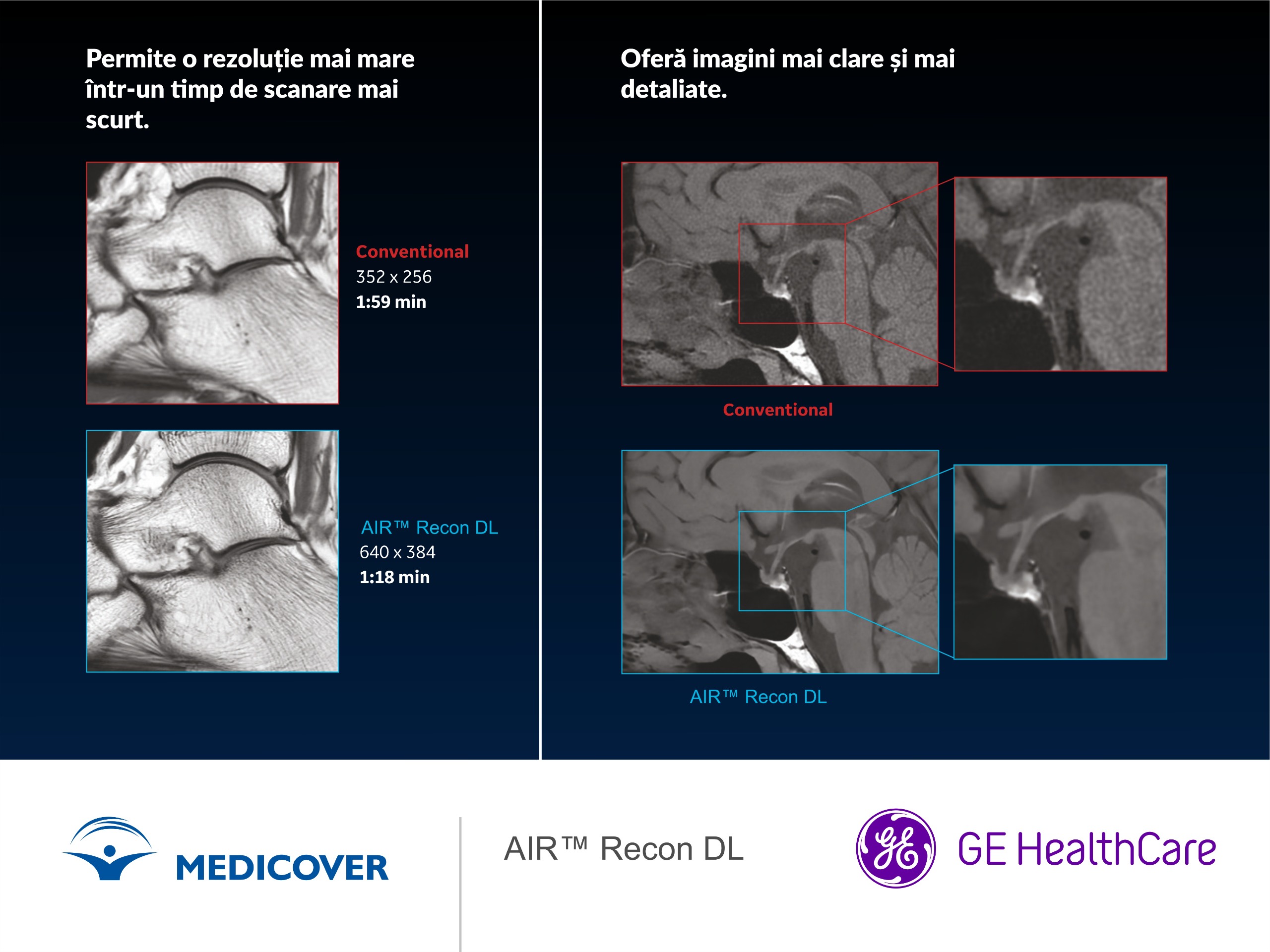 Investigațiile RMN cu Inteligențã Artificialã integratã sunt disponibile din 2025 în toate clinicile din rețeaua Medicover. Cu ajutorul Inteligenței Artificiale, imaginile obținute sunt mai clare și mai detaliate, iar timpul de scanare pentru fiecare pacient este redus cu aproximativ 30%, minimizând astfel disconfortul pacientului.