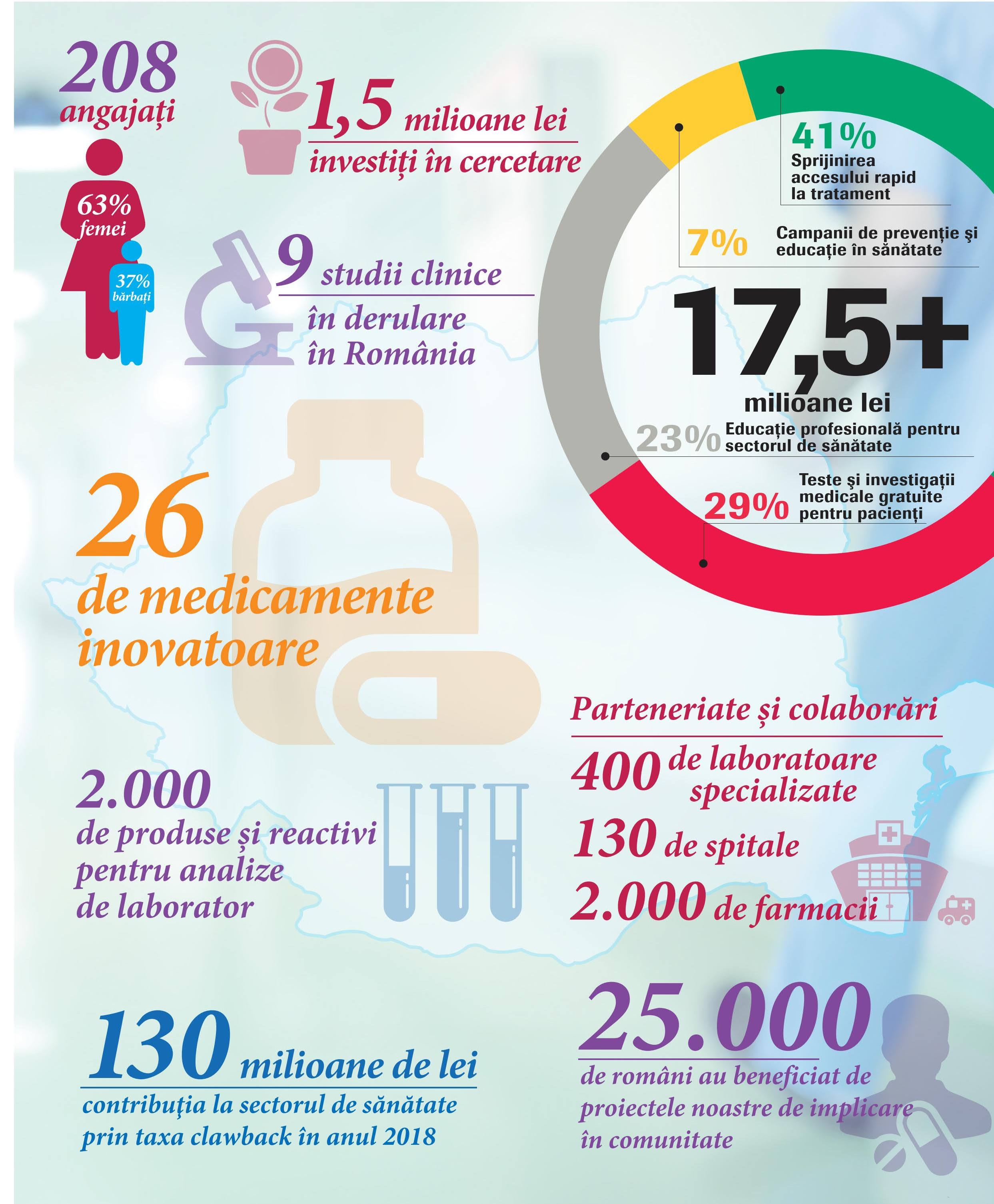 În plus, 130 de femei cu forme avansate de cancer de sân şi cancer ovarian care se aflau în imposibilitatea de a obţine la timp tratamentul de care aveau nevoie, din cauza unor întârzieri în cadrul procesului de rambursare al medicamentului, au beneficiat de acces rapid la tratament. Mai mult, 33 de pacienți au primit tratament de ultimă generaţie, în cadrul celor 9 studii clinice derulate de Roche în Romania.