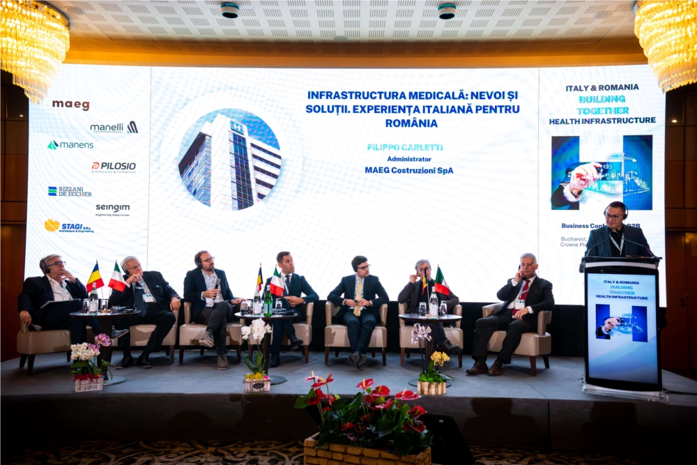 „Ediția din 2023 a evenimentului “Italy & Romania: Building together” a evidențiat încă o dată importanța pe care țările noastre o acordă dezvoltării infrastructurilor sustenabile. România se confruntă cu provocări importante în sectorul sanitar și este esențial ca noi toți să concentrăm eforturile instituțiilor, autorităților și companiilor pentru a consolida, construi și dezvolta acest sector.