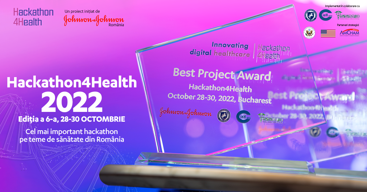BUCUREȘTI, ROMÂNIA 3 noiembrie 2022 – cea de-a 6-a ediție a Hackathon4Health, o inițiativă a companiei Johnson & Johnson România, a avut loc în perioada 28-30 octombrie, având alături ca parteneri de implementare Universitatea de Medicină și Farmacie "Carol Davila" din București (UMFCD) prin Centrul de Inovație și e-Health (CieH) și Asociația Societatea Studenților în Medicină din București (SSMB). Este a treia ediție dezvoltată împreună, urmare a Acordului de Parteneriat academic-privat în domeniul digitalizării și inovației semnat în anul 2020.