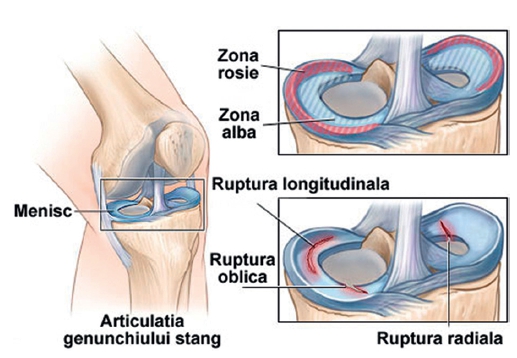 Leziunile meniscale (rupturile de menisc) pot fi posttraumatice sau degenerative.