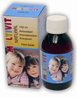 Siropul MULTIVIT Natural conţine o formulă echilibrată de vitamine şi minerale esenţiale creşterii, dezvoltării şi bunei funcţionări a organismului. Are o actiune puternic antioxidantă şi imunostimulatoare protejând organismul de radicalii liberi şi faţă de acţiunea agenţilor patogeni. Grupul de vitamine B este indispensabil pentru o bună stare de sănătate şi pentru desfăşurarea normală a proceselor metabolice. Calciul sub formă de Citrat Malat de Calciu prezintă cel mai ridicat grad de absorbţie la nivelul organismului (60-70%) şi alături de Vitamina D3 promovează sănătatea oaselor şi a dinţilor.