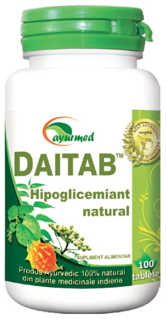 DAITAB™- contribuie la menținerea concentrației normale de glucoză în sânge prin: reglarea secreției de insulină de la nivelul pancreasului, creșterea utilizării periferice a glucozei, inhibarea absorbției glucozei din intestin. Susține metabolismul lipidic și proteic (dereglate în cazul diabetului). Fitonutrienții activi au rol important în prevenirea complicațiilor cronice cauzate de hiperglicemie, care se manifestă la nivelul sistemului nervos (neuropatie), urogenital (nefropatie), cardio¬vascular (angiopatie) și al ochilor (retinopatie). Antioxidanții din extractele din plante neutralizează radicalii liberi, susțin imunitatea și respirația celulară, întârzie procesele degenerative și evoluția unor boli cronice cauzate de stresul oxidativ.