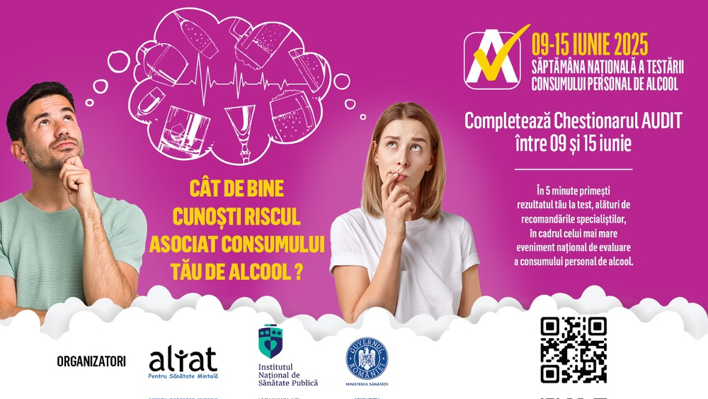 Persoanele cu vârsta de peste 18 ani au ocazia să participe din nou anul acesta la cea mai amplă campanie națională de evaluare a consumului personal de alcool și de prevenire a consumului riscant. În perioada 9-15 iunie 2025, românii sunt invitați la Săptămâna Națională a Evaluării Consumului Personal de Alcool, pentru a afla care este riscul asociat consumului lor de alcool și să primească recomandări de la specialiști.