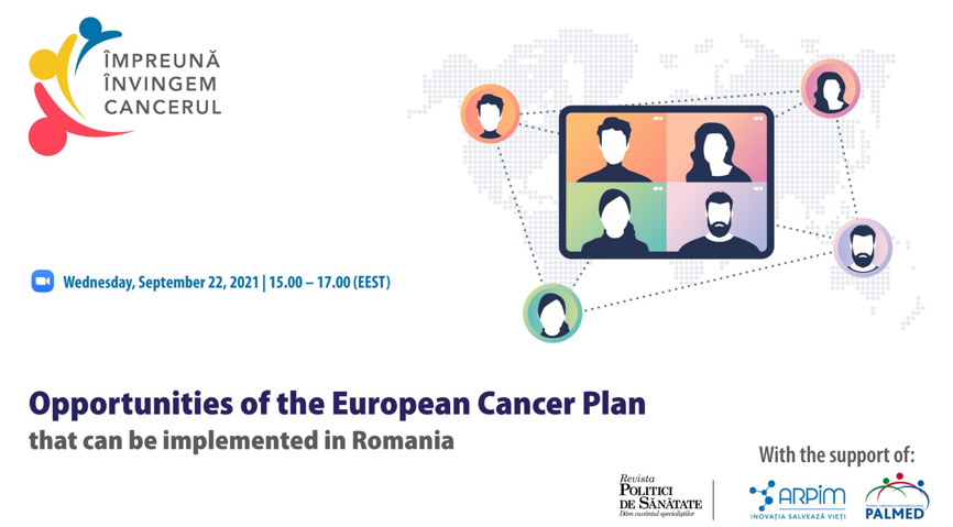 Dezbaterea ”Oportunități ale Planului European de Combatere a Cancerului ce pot fi implementate în România”, organizată pe 22 septembrie 2021 de revista Politici de Sănătate cu sprijinul Asociației Române a Producătorilor Internaționali de Medicamente (ARPIM) și al Patronatului Furnizorilor de Servicii Medicale Private (PALMED), a reunit reprezentanții instituțiilor UE, factori de decizie politică, profesioniști din domeniul sănătății și asociații de pacienți relevante pentru domeniul oncologic, pentru a identifica provocările și ineficiențele detectate în toate aspectele legate de gestionarea cancerului.