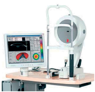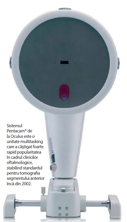 Cea mai recentă inovație în rândul sistemelor de imagistică oftalmologică bazat pe principiul Scheimpflug este Pentacam (Oculus,Wetzlar, Germania) (Fig. 1 ), primul instrument multifuncțional care furnizează cinci opțiuni diferite de măsurare pentru segmentul anterior al globului ocular. Acestea sunt pahimetria, topografia corneei, curbura anterioară și posterioară a corneei, astigmatismul cornean și imagini Scheimpflug ale cristalinului.