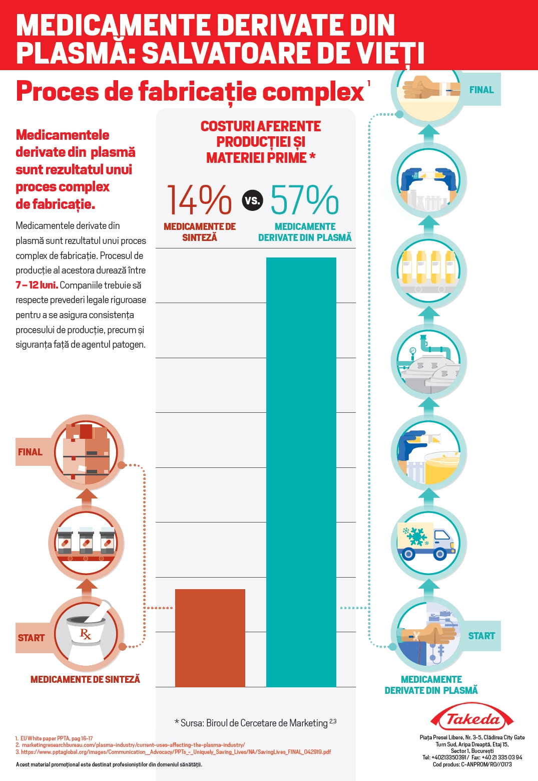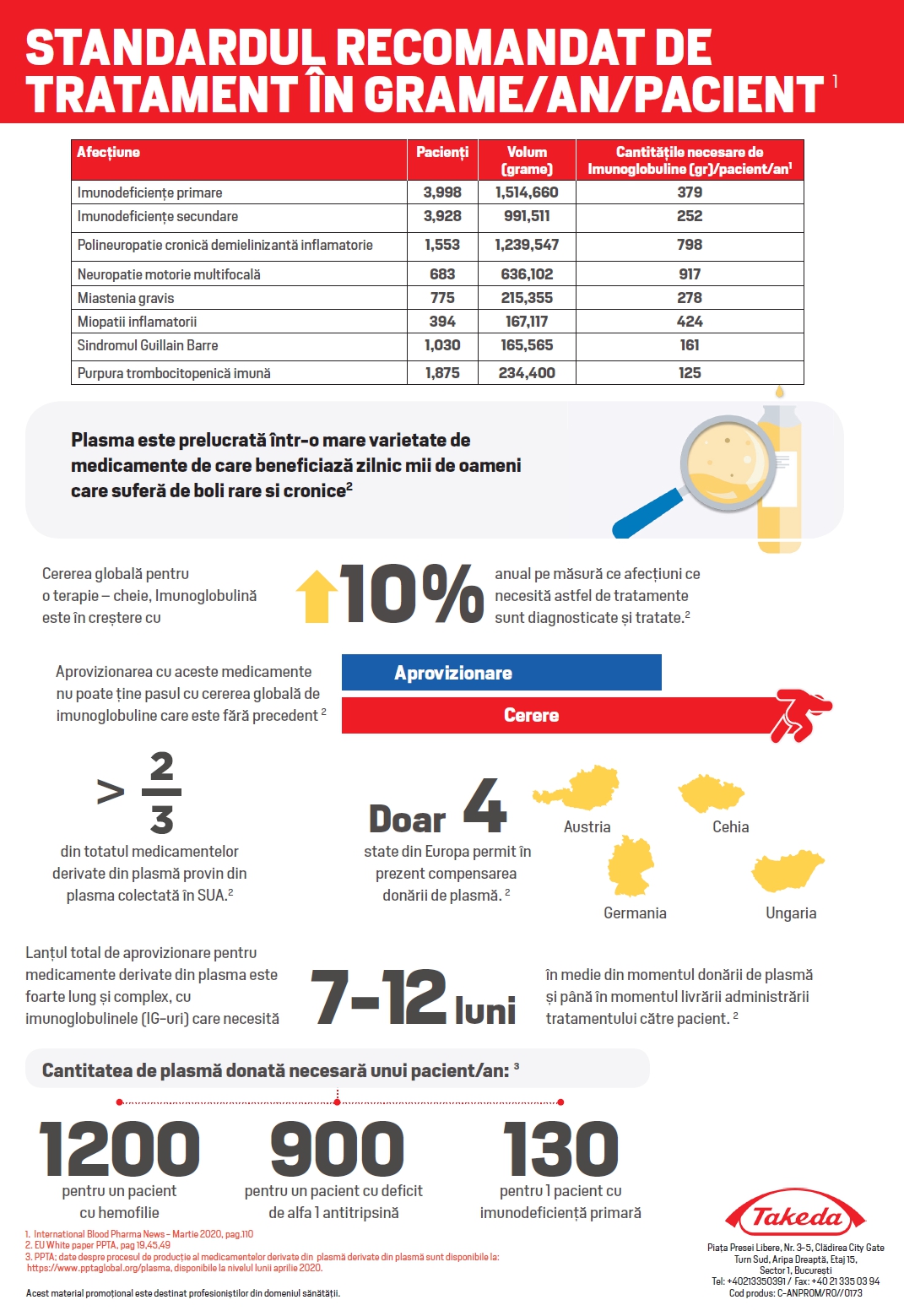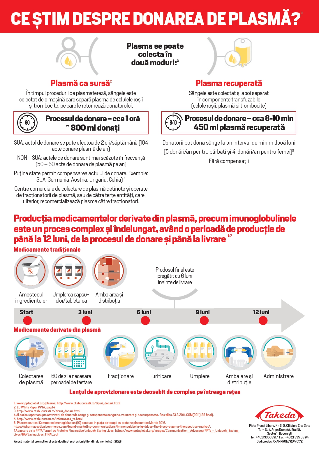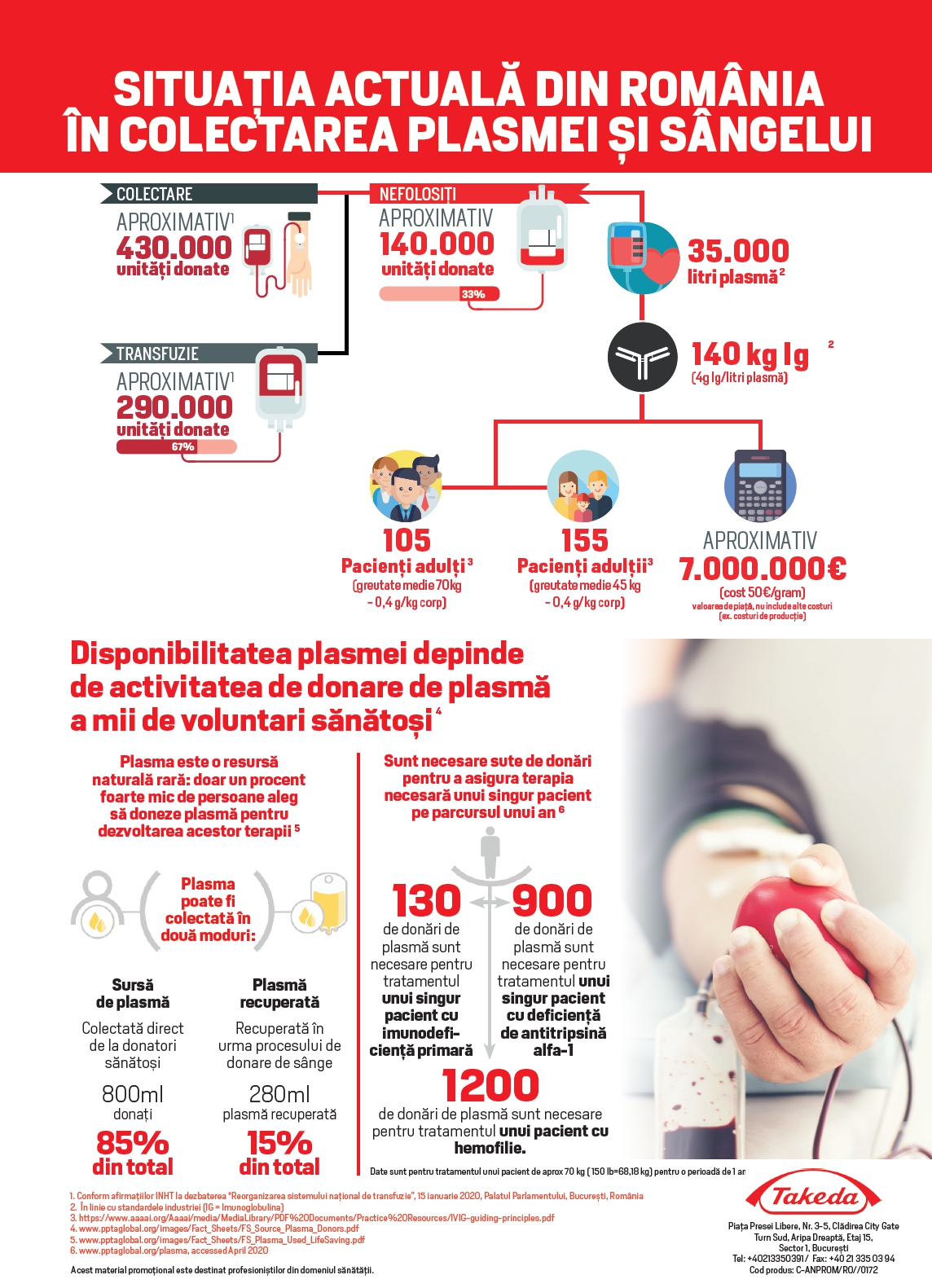 Pentru mai multe detalii despre situația actuală din România cu privire la colectarea plasmei și a sângelui, mecanismele de colectare a plasmei și fabricare a terapiilor derivate din plasmă, consultați infograficele anexate.