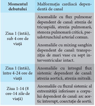 Malformaţiile cardiace congenitale care se decompensează în perioada de nou-născut sunt ductodependente, adică hemodinamica lor se înrăutăţeşte o dată cu închiderea (fiziologică!) a canalului (ductului) arterial.