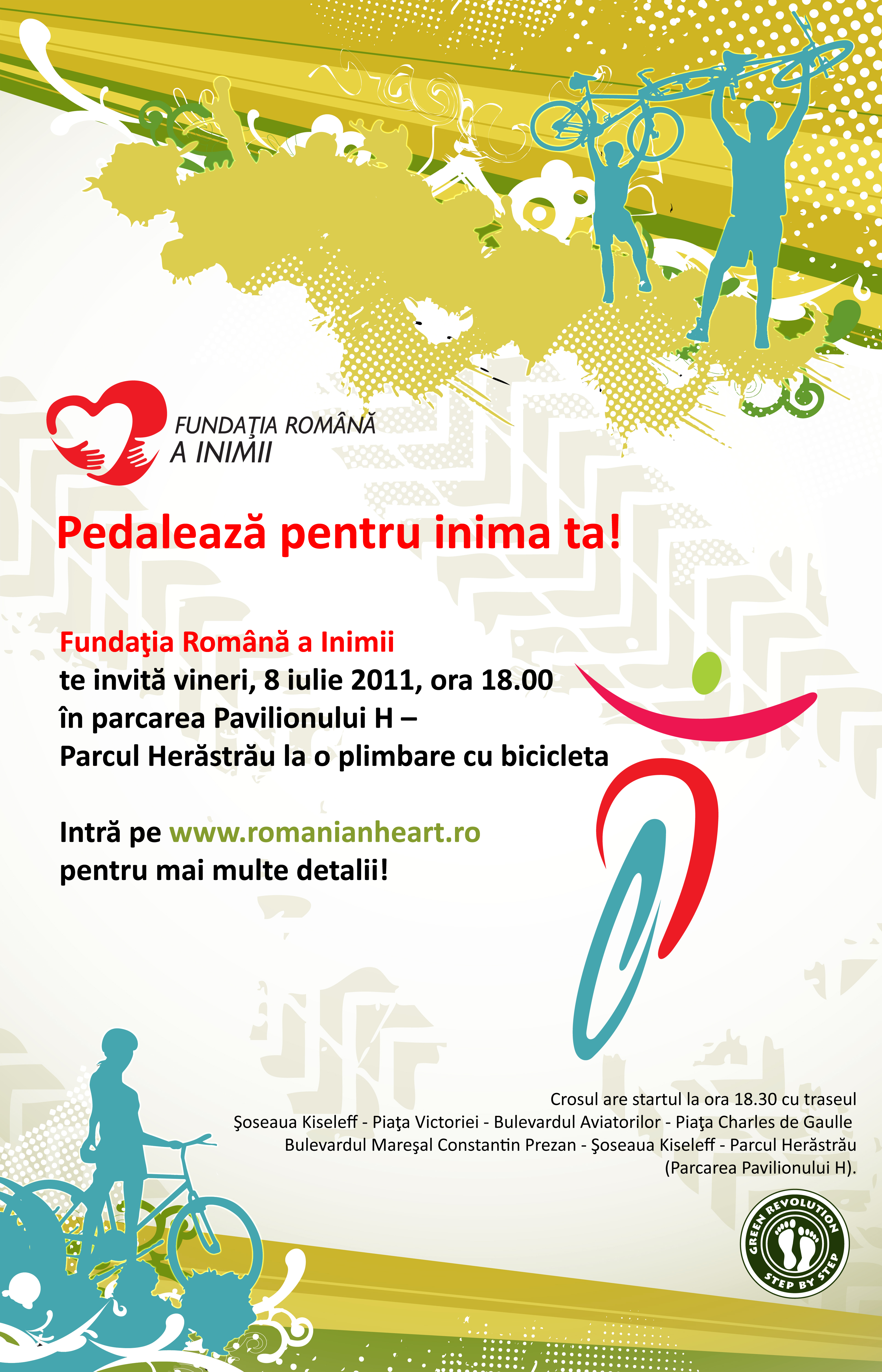 Fundaţia Română a Inimii organizează crosul „Pedalează pentru inima ta!” vineri, 8 iulie 2011, ora 18.00, în parcarea Pavilionului H – Parcul Herăstrău.