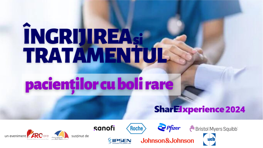 Share Experience 2024 este un proiect organizat de Alianța Națională pentru Boli Rare România și Asociația Română de Cancere Rare cu sprijinul Sanofi, Roche, Johnson & Johnson, Pfizer, Ipsen, Bristol Myers Squibb, UCB Pharma.