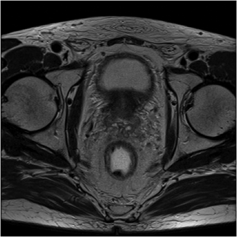 Imagistica prin rezonanță magnetică are un rol important și în restadializarea tumorilor rectale dupa chimio- și radioterapie, cu valoare predictivă negativă de 90%, respectiv valoare predictivă pozitivă de 50% (Vliegen et al Radiology 2008). În prezent se știe că aproximativ 50% din zonele de fibroză postterapeutică conțin și arii de recidivă tumorală.