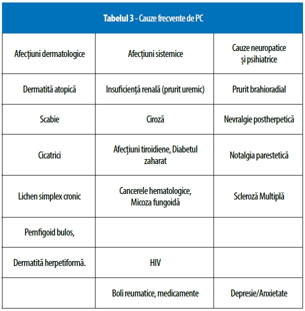 Pruritul din bolile sistemice se prezintă de obicei fără o erupție cutanată primară, apărând leziuni secundare: plăci lichenificate, excoriații și noduli de prurigo.