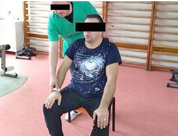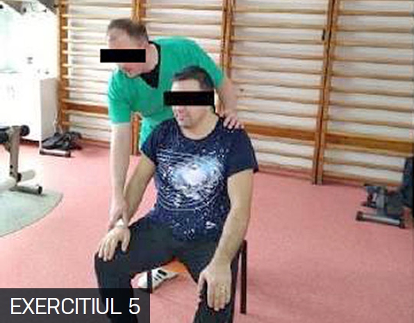P.I.: Pacientul asezat. I se explică acestuia cum trebuie să execute un exercițiu pentru hemitoracele drept. P.I.: Așezat cu mâinile pe coapse.