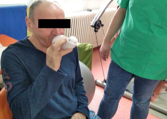 Antrenamentul musculaturii expiratorii şi facilitarea expectoraţiei cu ajutorul dispozitivului medical Shaker plus.